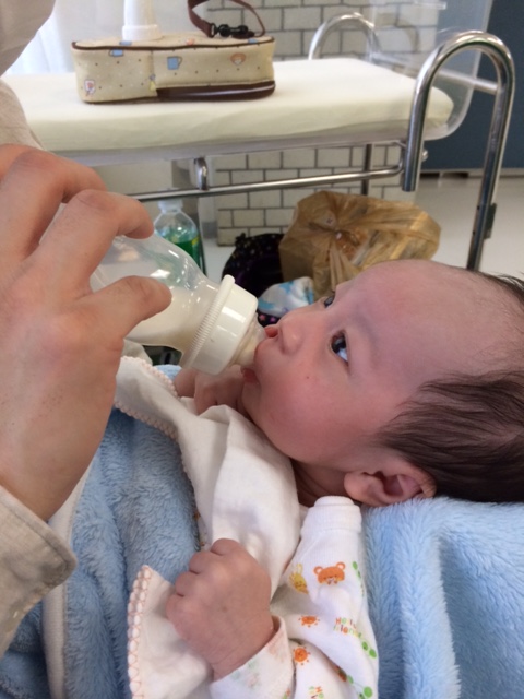 看護師さんに教えもらいながら、飲ませました。
